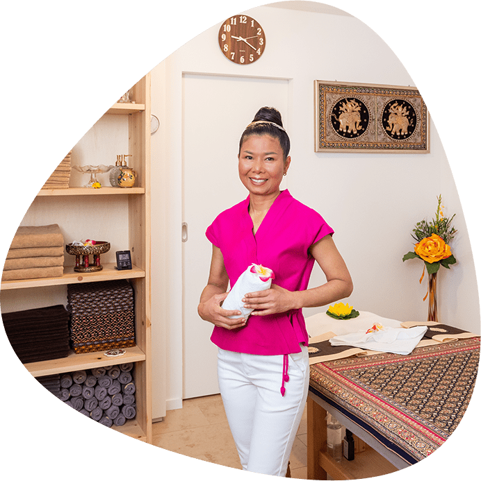 Die Thai-Massage mit zartem warmen Öl ist besonders bei verspannten Muskeln und angespanntem Körper zu empfehlen.